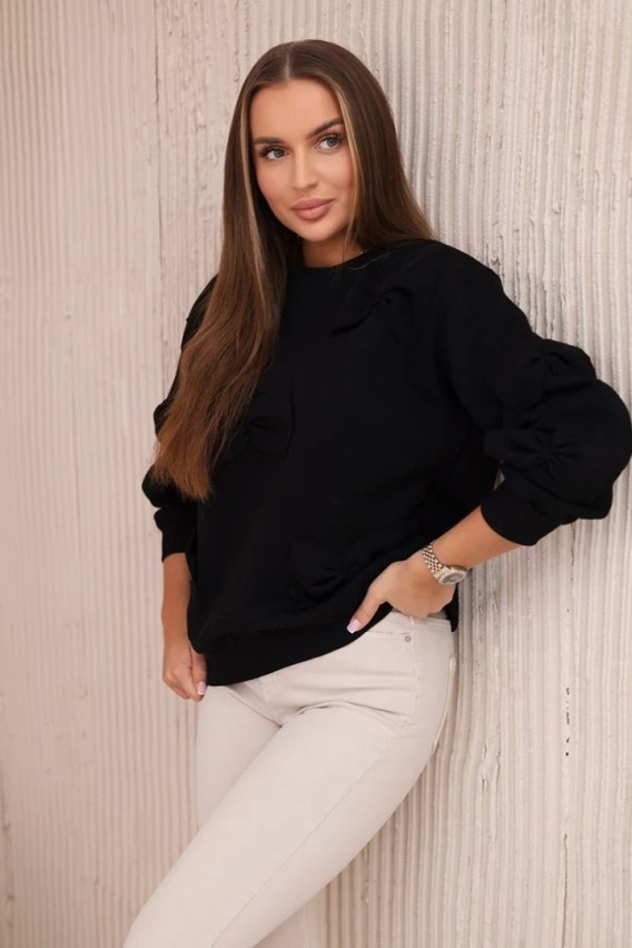 Bluza ocieplana ze ściągaczem i ozdobnymi kokardami czarna