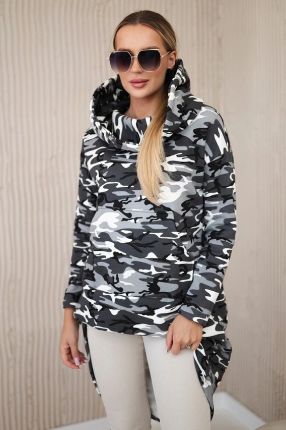 Bluza z długim tyłem moro szary+czarny