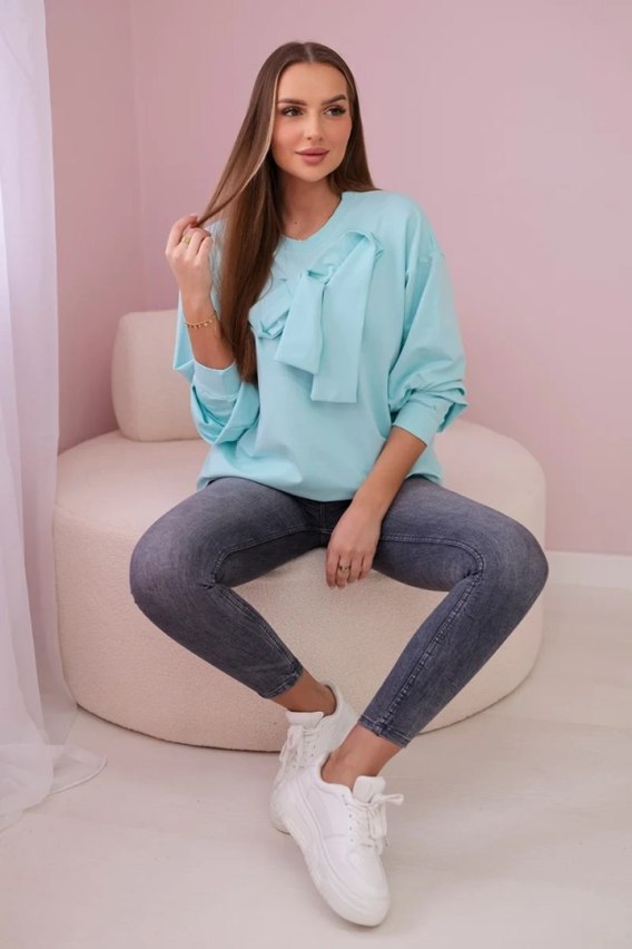 Bluzka bawełniana z kokardą miętowa