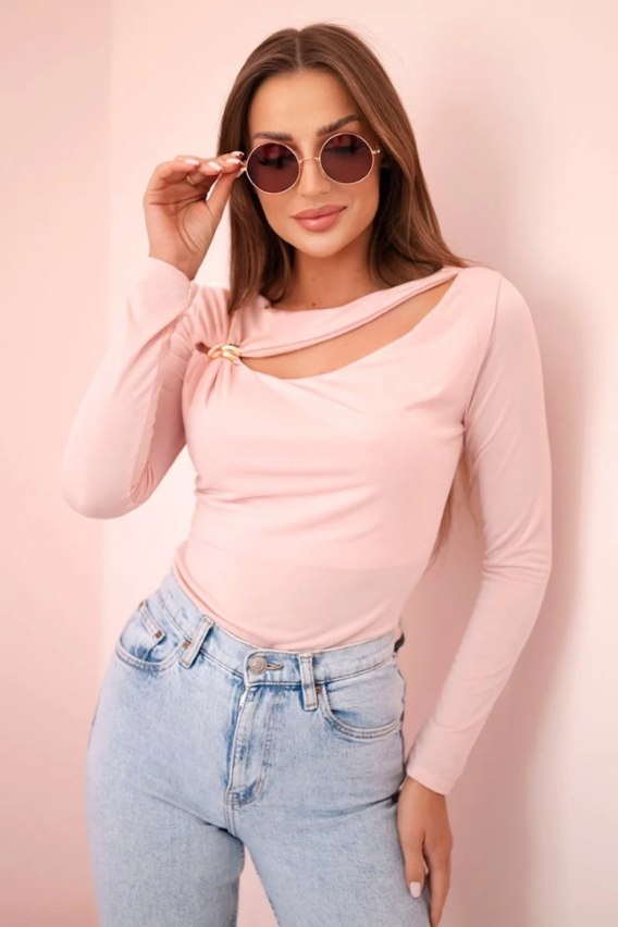 Bluzka body damska z marszczeniem i ozdobną klamrą pudrowy róż
