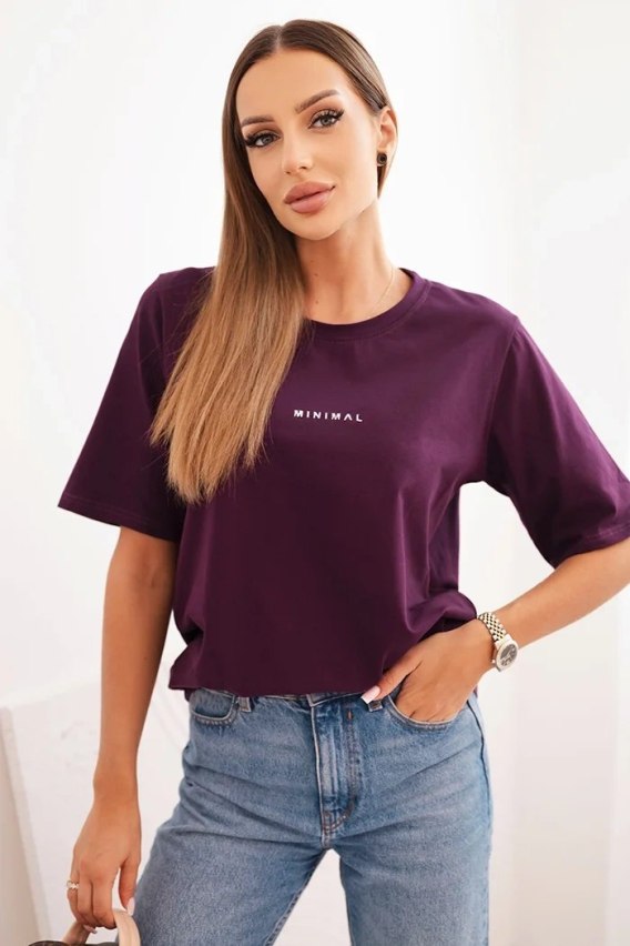 Bluzka damska bawełniana z nadrukiem Minimal śliwkowa