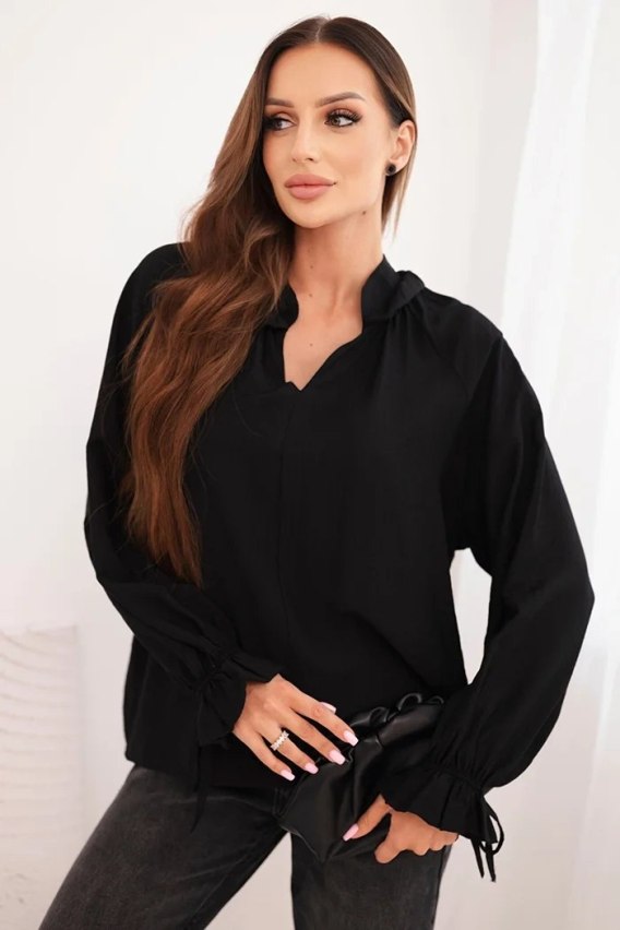 • Bluzka damska z wiskozy z dekoltem V i wiązaniem przy rękawach czarna