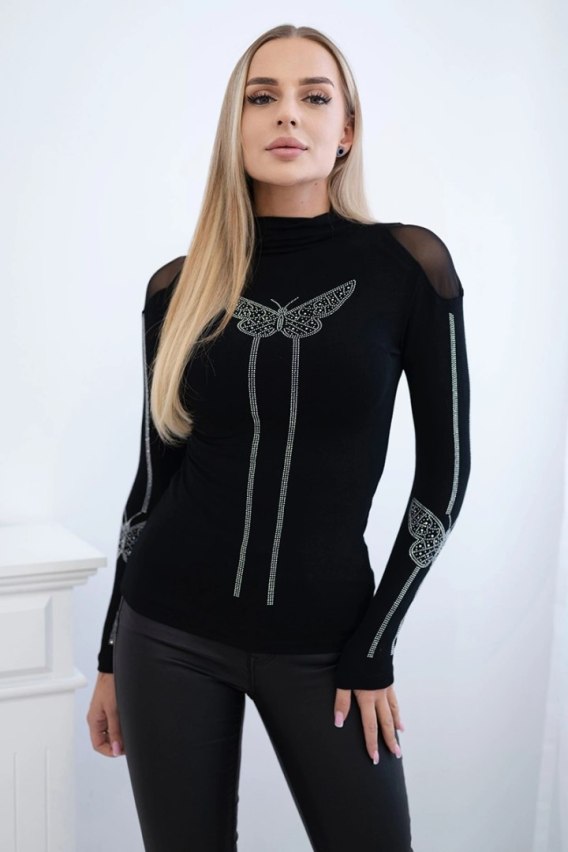 Bluzka dzianinowa z motylem z cyrkonii czarna
