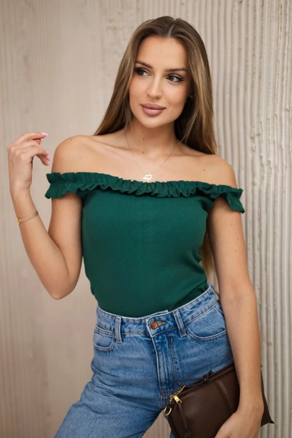• Bluzka hiszpanka z falbankami zielona