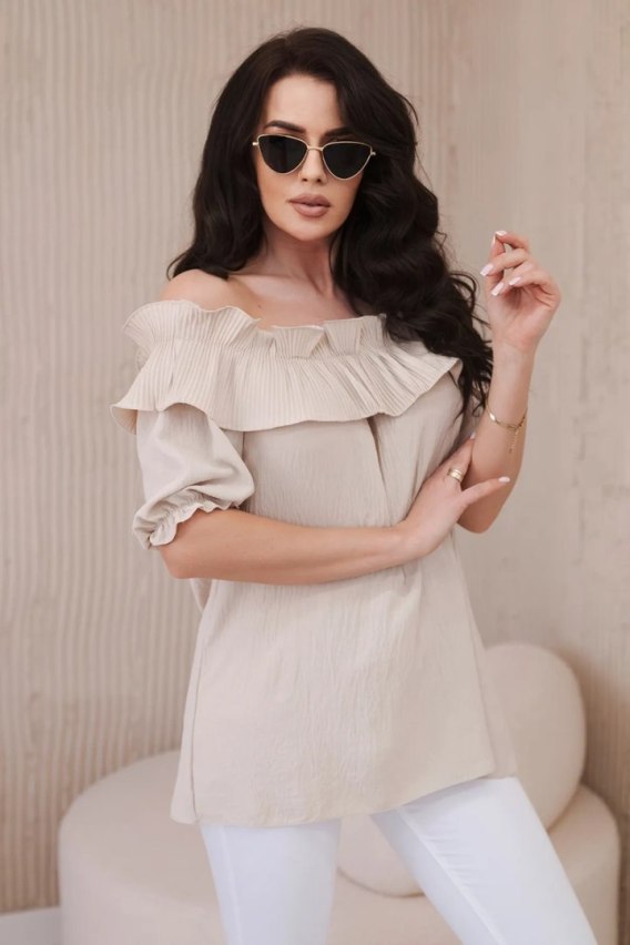 • Bluzka hiszpanka z ozdobną falbanką beżowa