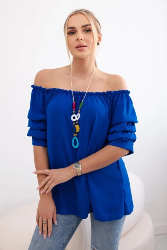 Bluzka hiszpanka z ozdobnym rękawem chabrowa