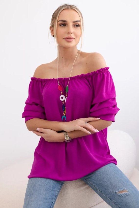 • Bluzka hiszpanka z ozdobnym rękawem ciemno fioletowa