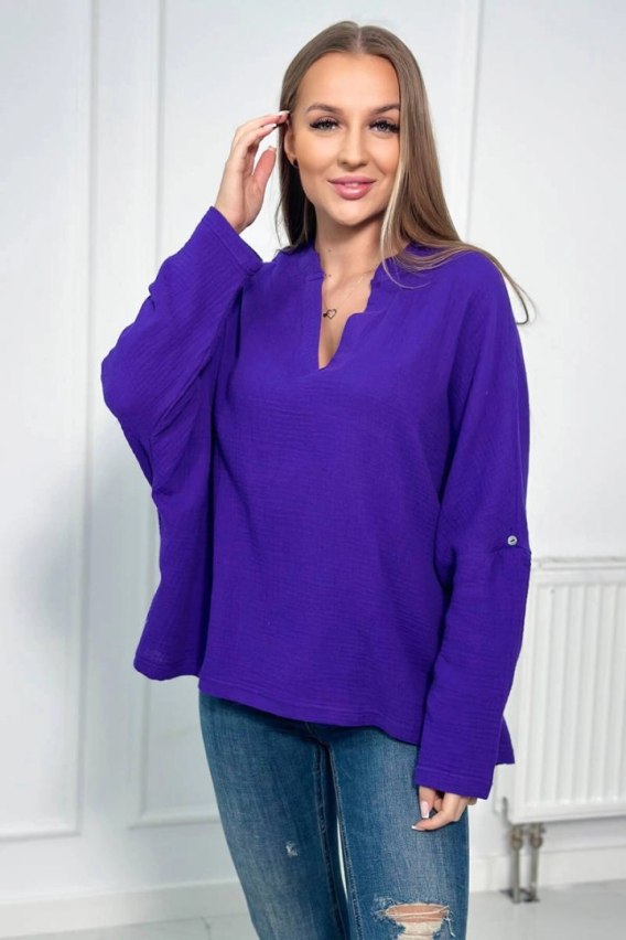 Bluzka muślinowa z podwijanym rękawem ciemno fioletowa