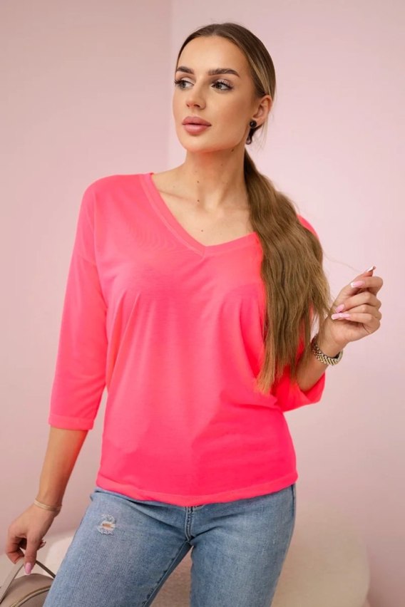 Prezentujemy Państwu wygodną bluzkę. Bluzka posiada dekolt w kształcie litery V. Bluzka wykonana jest z wysokiej jakości materiału. Rozmiar jest uniwersalny i będzie odpowiedni dla Pań noszących rozmiar XS, S lub M.