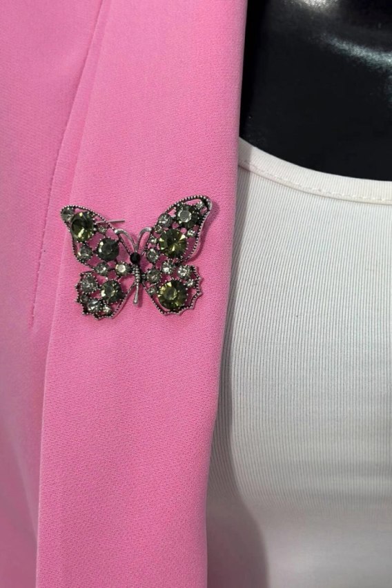 Damska broszka w kształcie motyla to bardzo modny i delikatny dodatek, który dodaje uroku i elegancji każdej stylizacji. Motyl jest symbolem transformacji i przemiany, dlatego broszka w jego kształcie może być również wyrazem indywidualnego stylu i osobistego rozwoju. Broszka w kształcie motyla doskonale sprawdzi się jako dodatek do wieczorowych sukienek, ale także do codziennych stylizacji, jak np. swetrowe kardigany czy letnie sukienki. To subtelny dodatek, który z pewnością przyciągnie uwagę i podkreśli indywidualny styl osoby noszącej go. Broszka posiada zapięcie typu agrafka, które w prosty sposób można przypiąć do każdego ubrania czy dodatku.