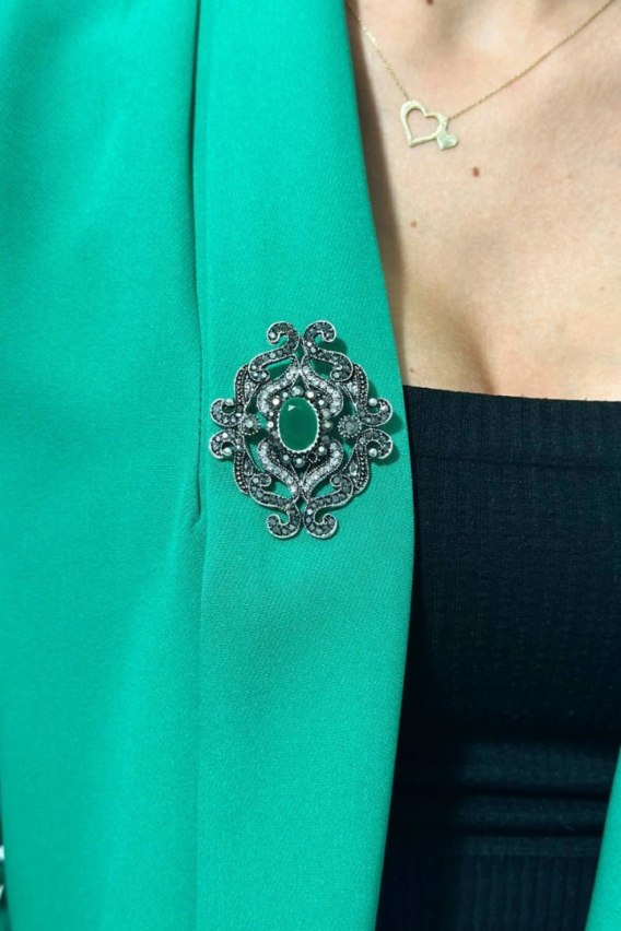 Broszka, mały i subtelny detal, od dawna nieodłączny element biżuterii, stała się ostatnio niezwykle modnym akcentem w świecie mody. To niezwykle wszechstronne i eleganckie akcesorium, które może nadać każdemu strojowi niepowtarzalny charakter. Broszki są teraz nie tylko ozdobą, ale również sposobem wyrażania swojego stylu i osobowości. Broszki można nosić na wiele sposobów - na kołnierzyku koszuli, na płaszczu, na kapeluszu czy nawet na torbie. Dodają uroku i indywidualności każdej stylizacji, a jednocześnie są niewielkim akcentem, który nie przytłacza całości. Nie ważne, czy preferujesz klasyczny styl, czy bardziej awangardowe rozwiązania, broszka jest idealnym dodatkiem do Twojej garderoby. Jest to wspaniała okazja do wyrażenia siebie poprzez modę i dodanie swojego osobistego znaku do swojego stroju. Dlatego, jeśli chcesz podkreślić swój styl i dodać nutkę elegancji do swojej garderoby, sięgnij po broszkę. To małe akcesorium może naprawdę zrobić wielką różnicę i stać się Twoim ulubionym elementem w świecie mody. Broszka posiada zapięcie typu agrafka, które w prosty sposób można przypiąć do każdego ubrania czy dodatku.