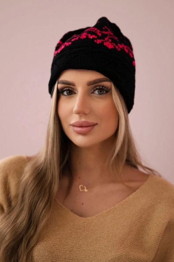• Czapka damska Kira K374 czarny+różowy