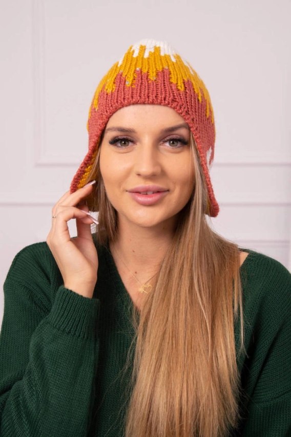 Czapka damska Nikol K405 biały+musztardowy+rudy