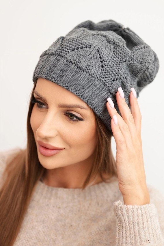 Czapka damska zimowa z wełną o strukturalnym splocie K432 grafitowa