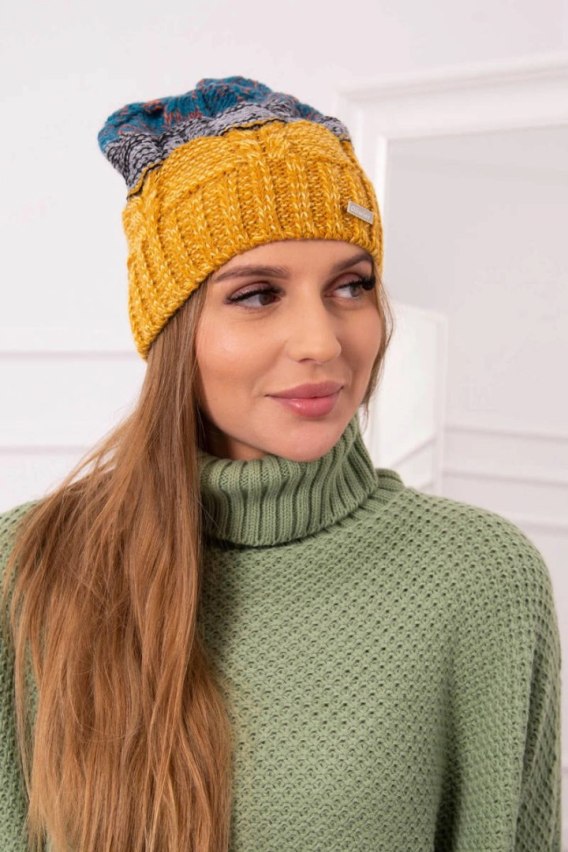Czapka z polarem Dolores K303 musztardowy+czarny+morski