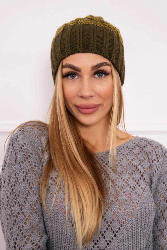 Czapka z polarem Paryż K213 khaki+kiwi