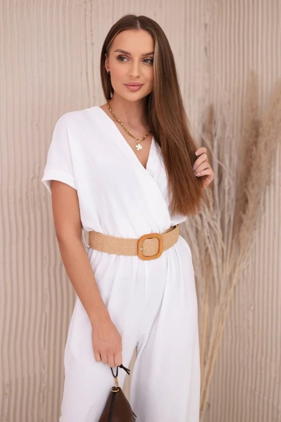 Kombinezon z ozdobnym paskiem w talii biały