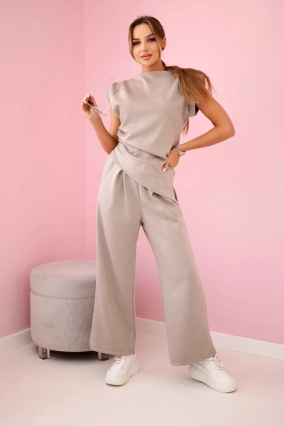 Komplet asymetryczna bluzka + spodnie ciemny beżowy