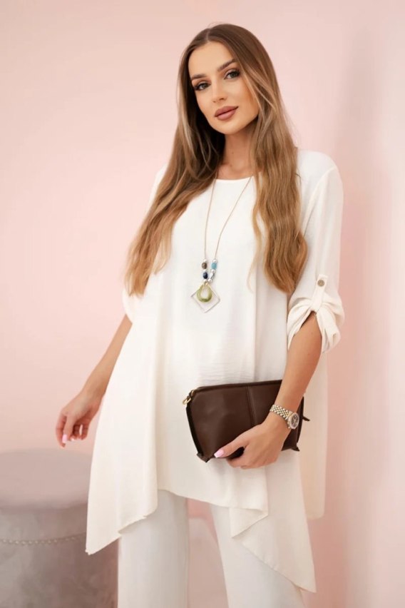 Komplet bluzka + spodnie z wisiorkiem jasny beżowy