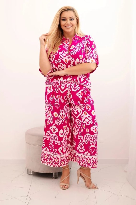 Komplet damski Plus Size wiskozowy z geometrycznym nadrukiem fuksja
