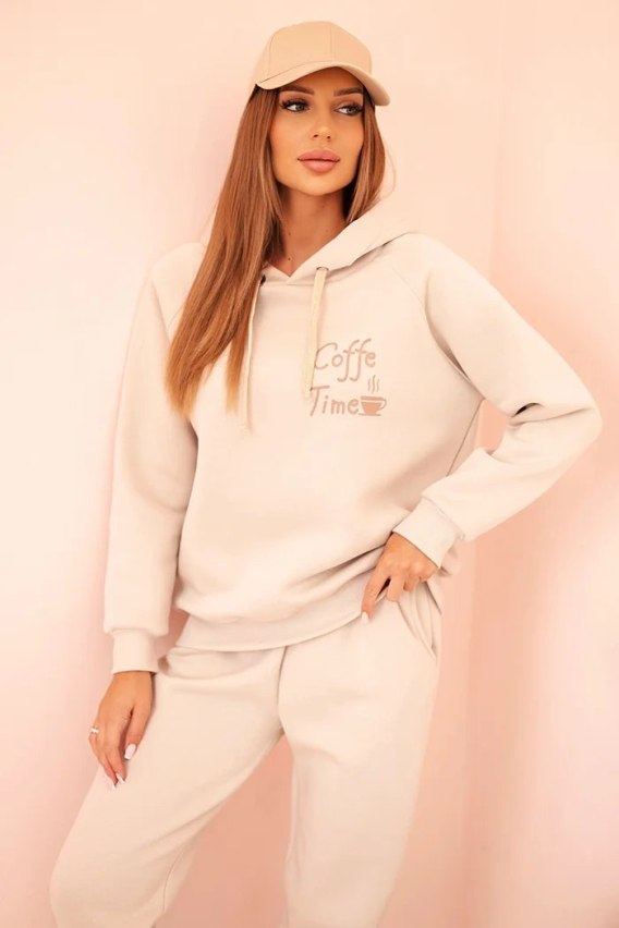 Komplet damski bawełniany ocieplany z nadrukiem beżowy