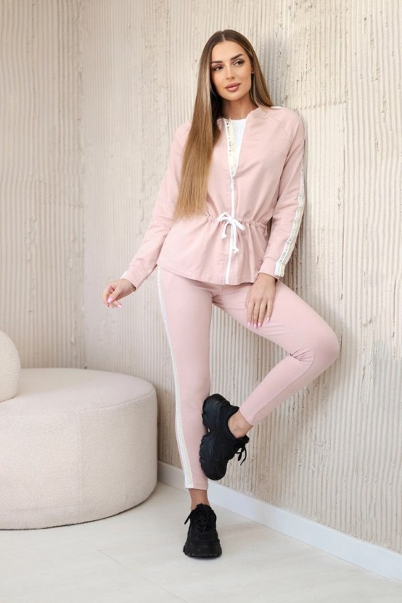 • Komplet damski bawełniany z lampasem i ściągaczami pudrowy róż