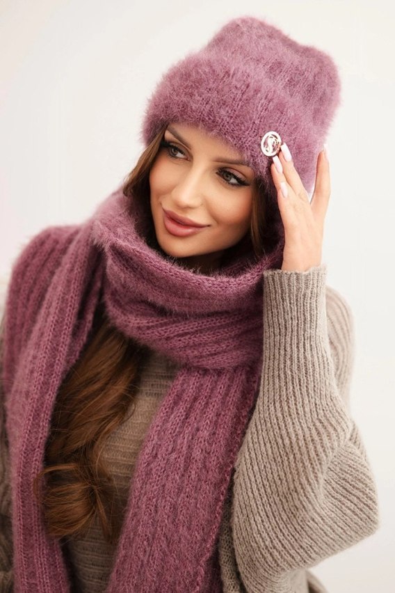 Idealny zestaw na zimowe dni - zarówno na co dzień, jak i jako dodatek do eleganckich stylizacji. Subtelna tekstura materiału oraz ozdobna przypinka dodają uroku i charakteru.