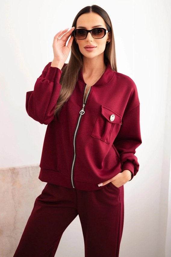 Komplet damski masełkowy z wiskozy z rozpinaną bluzą i spodniami śliwkowy