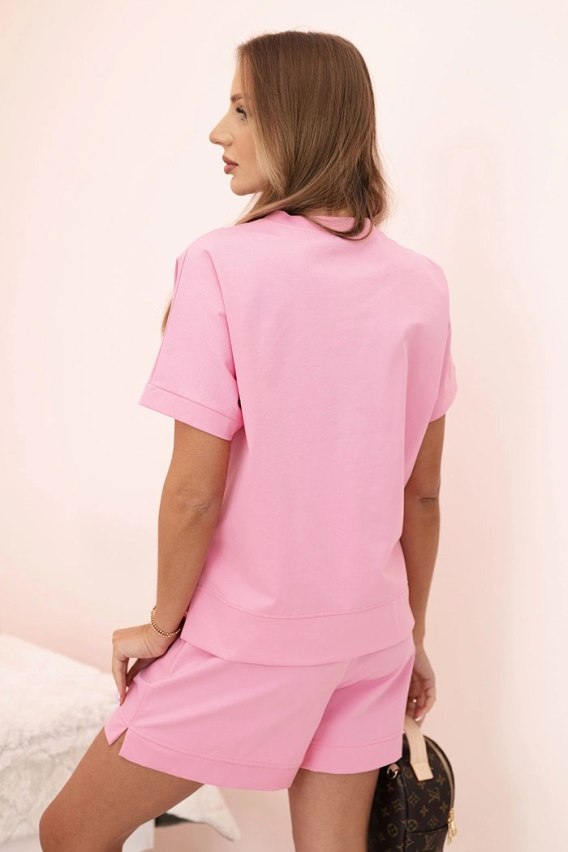 Komplet damski punto z krótkim rękawem i szortami jasny różowy
