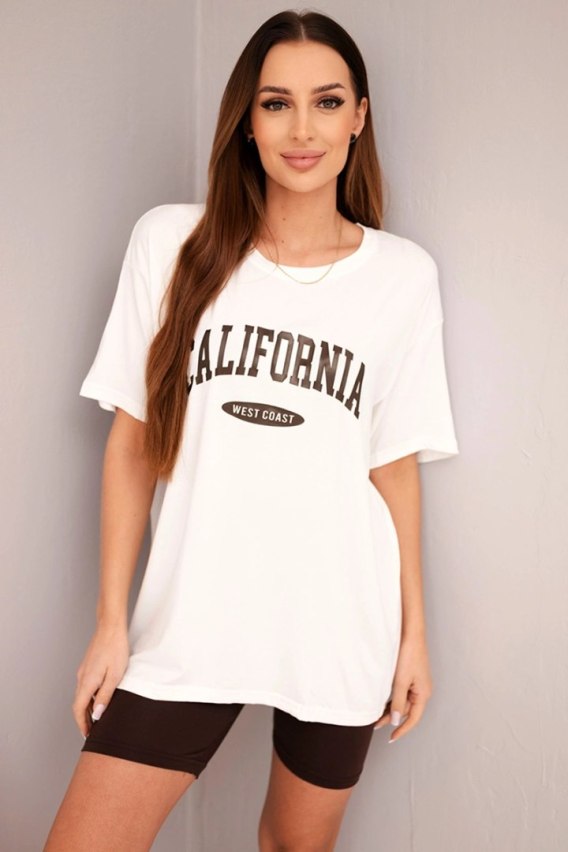 Komplet damski z luźną bluzką i dopasowanymi spodenkami ecru + brązowy