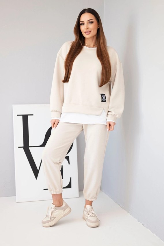 Komplet damski z masełkowy z luźną bluzą i spodniami dresowymi beżowy