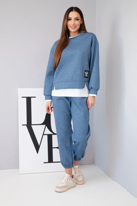• Komplet damski z masełkowy z luźną bluzą i spodniami dresowymi jeansowy melanż