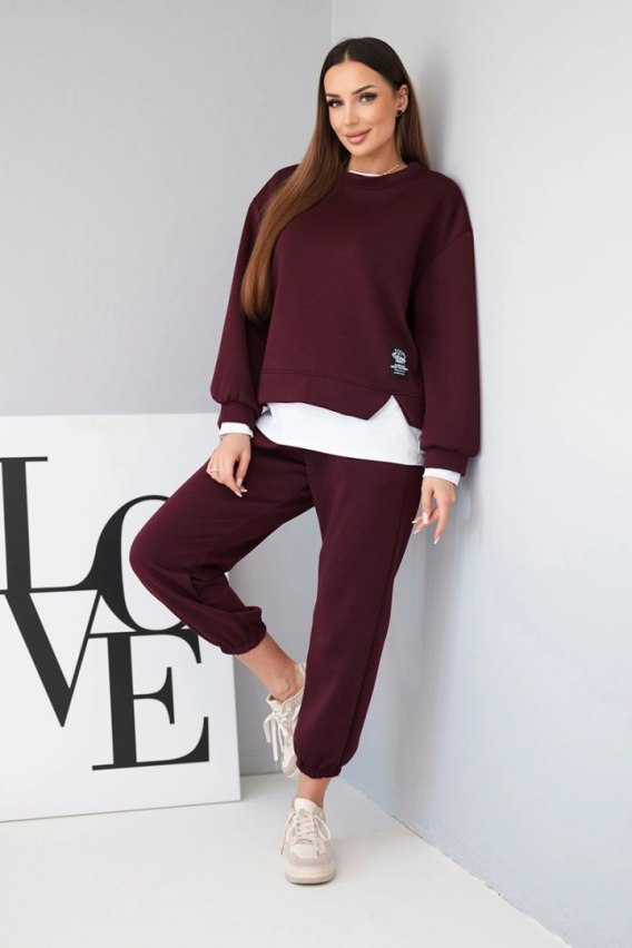 Komplet damski z masełkowy z luźną bluzą i spodniami dresowymi śliwkowy
