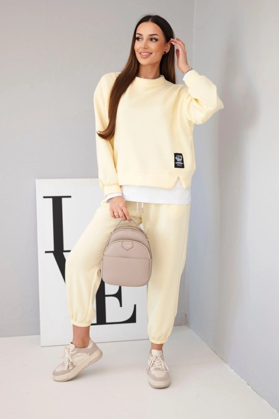 Komplet damski z masełkowy z luźną bluzą i spodniami dresowymi żółty