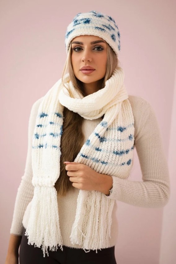 Komplet damski z szalem Anika K304 ecru+jeansowy