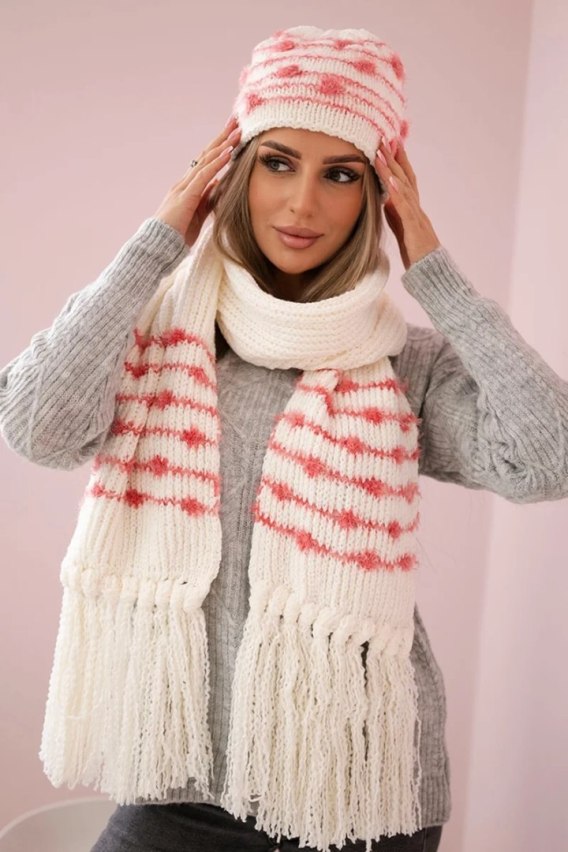 Komplet damski z szalem Anika K304 ecru+malinowy