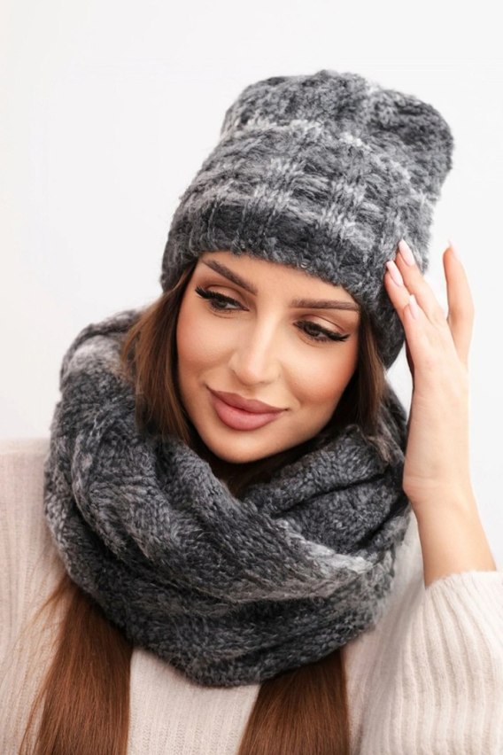 Komplet damski zimowy z moherem czapka i komin o puszystej fakturze K500 grafitowy