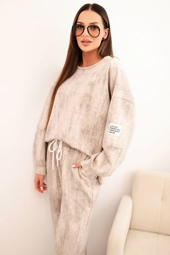 Komplet dresowy damski oversize z wiskozy i z efektem sprania ciemny beżowy