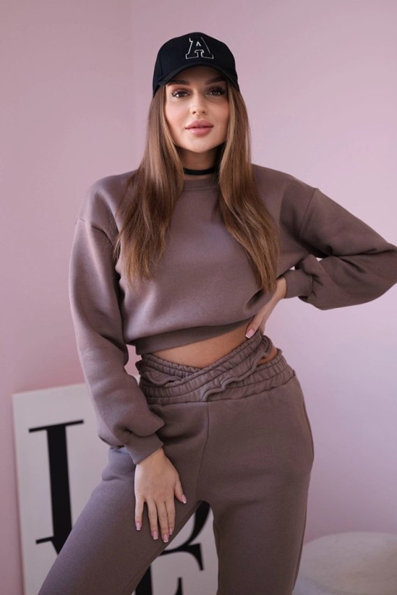 Komplet ocieplany z krótką bluzą mocca