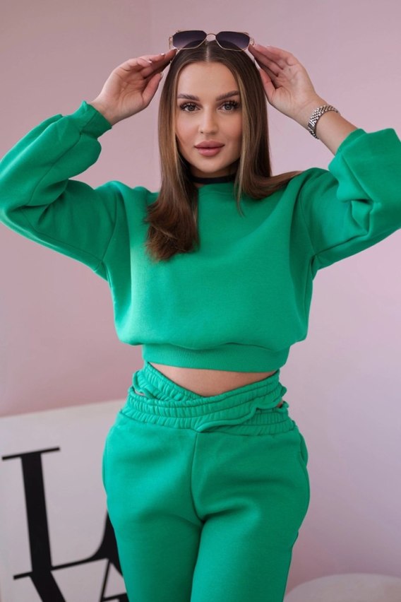 Prezentujemy Państwu komplet bluzy i spodni. Bluza posiada wszytą gumę u dołu. Spodnie posiadają dodatkową gumę w pasie. Komplet wykonany jest z ocieplanego materiału. Rozmiar jest uniwersalny i będzie odpowiedni dla Pań w rozmiarze S, M lub L.