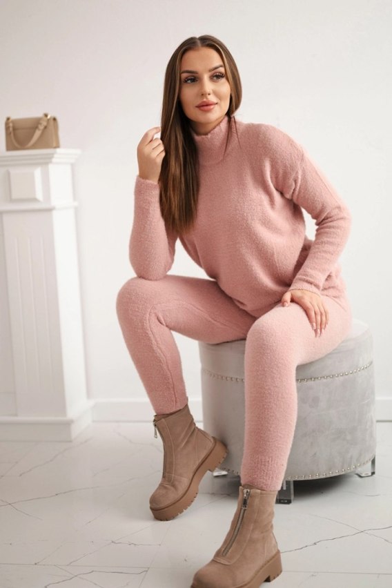 • Komplet swetrowy alpaka dwuczęściowy ciemny pudrowy róż