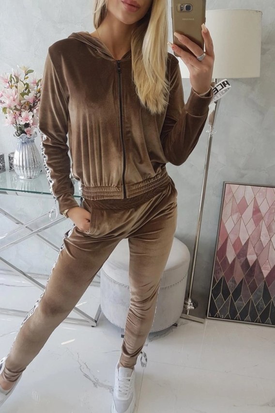 • Komplet welurowy z ozdobnymi taśmami brązowy