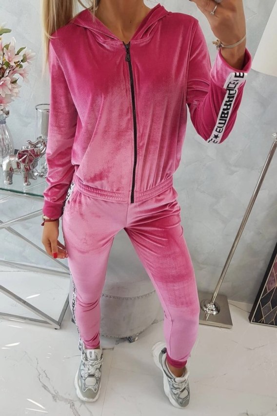 Komplet welurowy z ozdobnymi taśmami fuksja