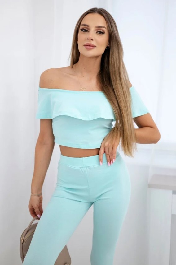 Prezentujemy Państwu komplet bluzki z falbanką i spodni.