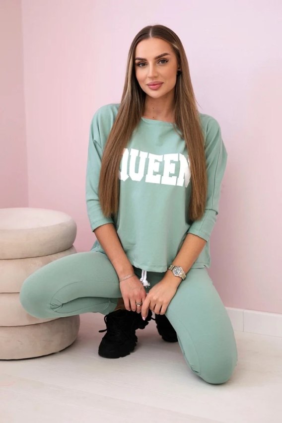 Prezentujemy Państwu komplet bluzki i spodni. Bluzka oversize, posiada nadruk Queen. Spodnie z kieszeniami i wiązaniem w pasie. Komplet wykonany jest z wysokiej jakości materiału. Rozmiar jest uniwersalny i będzie odpowiedni dla Pań w rozmiarze S, M lub L.