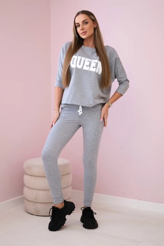 Komplet z nadrukiem Queen szary