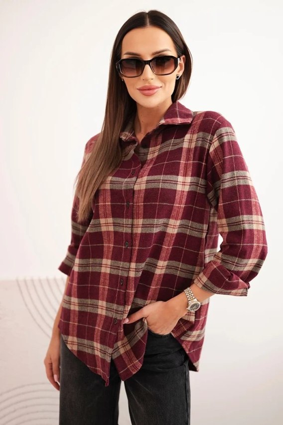 • Koszula damska bawełniana w kratę z dłuższym tyłem bordowa