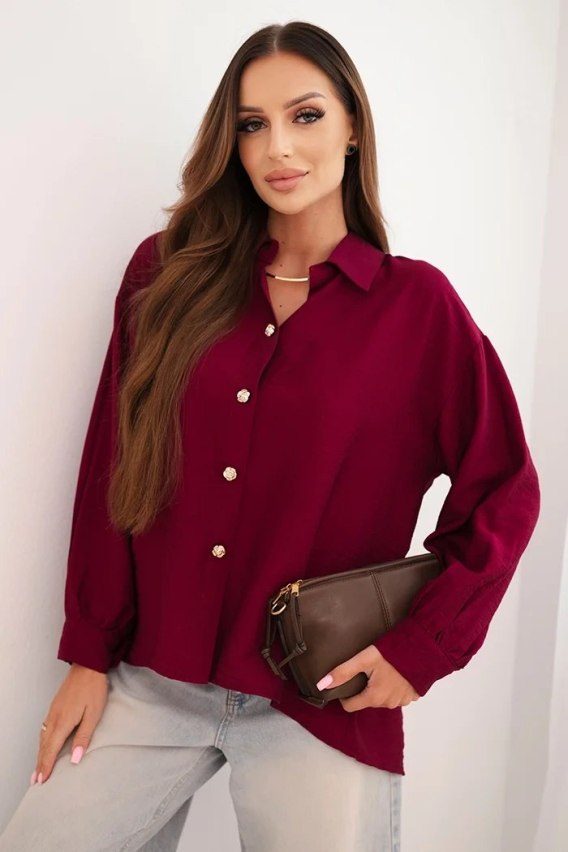 Koszula damska elegancka z wiskozy z ozdobnymi guzikami śliwkowa