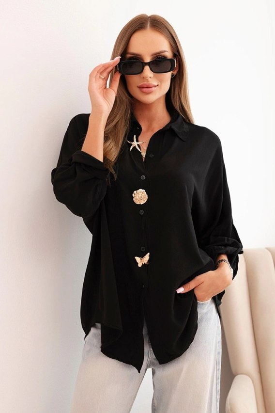 Koszula damska z wiskozą z ozdobnymi guzikami i kołnierzem czarna