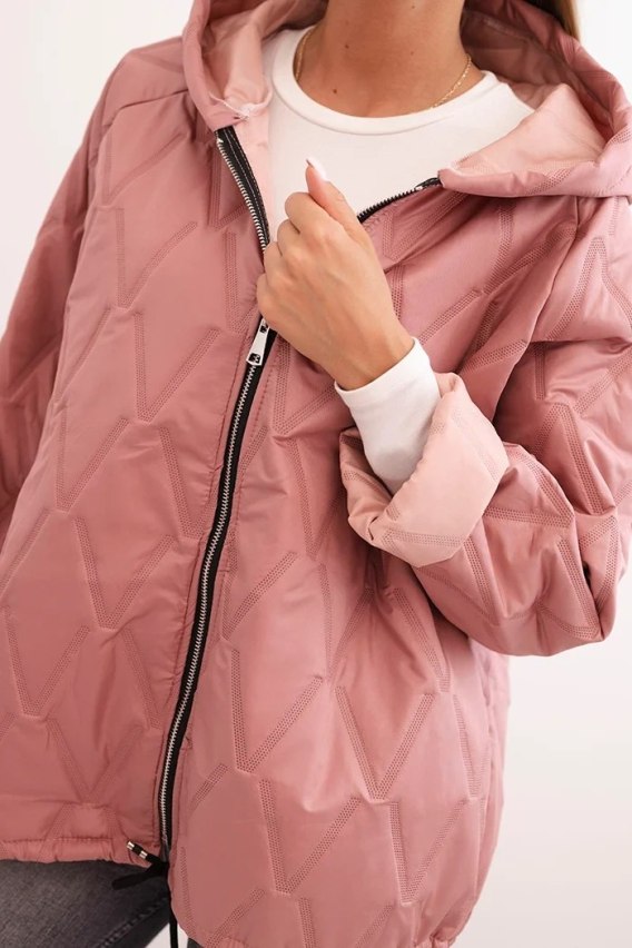 Kurtka damska pikowana z kapturem ciemno różowa